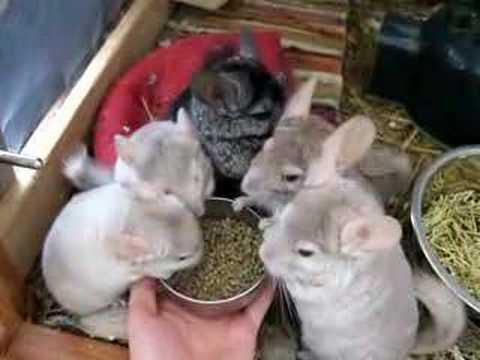 Young Chinchillas eating pelleted feed.If the chinchilla is currently on a poor quality feed, i.e. one that is filled with treats, is meant for another animal, or just not a good quality, it is often best to switch “cold turkey”. When doing a cold turkey switch, the old pellets are removed and thrown out. The feeder or bowl is filled with fresh, new pellets. Sprinkle acidophilus over the pellets daily to prevent any problems.